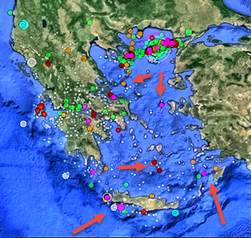 Παρατηρείστε την αύξηση του αριθμού των σεισμών στη περιοχή του τόξου της Ανατολίας, της Ρόδου, νότια της Κρήτης και στο κεντρικό Αιγαίο. σύμφωνα με τις προβλέψεις μου. Το θέμα πάντως δεν φαίνεται να έχει λήξει…