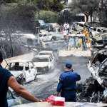 Η κατάσταση αλλοφροσύνης που πρέπει να επικρατούσε στο σημείο φαίνεται και από το πως βρέθηκαν καμένα δεκάδες ΙΧ μπροστά στο δρόμο. Ενα μποτιλιαρισμένο κομβόι καμένων αυτοκινήτων και μέσα σε αυτά, αλλά και στο δρόμο υπάρχουν πτώματα ανθρώπων που δεν κατάφεραν να διαφύγουν από τη φωτιά.
